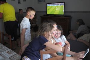La veille, la ville d’Etaples était en fête pour le 14 juillet. A tous les coins de rue, des animations étaient proposées. Spectacle de magie, sculpture sur ballons, démonstration de BMX, circuit en échasses… mais ce qui a vraiment plu aux enfants ce fut l’initiation au djembé. Une vraie découverte pour Vlad et sa petite sœur, qui ne connaissaient pas cet instrument de musique. Rendez-vous est pris le soir sur le port, pour un moment très attendu par les petits et les grands : le feu d’artifice ! Et même si Lola se bouche les oreilles car elle a peur du bruit, les autres apprécient la beauté des lumières dans le ciel. Le bouquet final fera même crier la foule rassemblée sur le port. Autre temps fort de ce week-end, la finale de la coupe du monde de football en Russie. Pour l’occasion, tous se sont grimés aux couleurs de la France, et Vlad et Lliana se sentent un peu français aujourd’hui. Ils partagent l’enthousiasme de Louis, passionné de foot qui joue en club, et dont le rêve est de devenir footballeur.