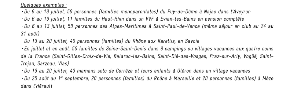 Les familles qui n’arrivent pas à joindre les deux bouts et se privent de vacances sont accompagnées par les bénévoles du Secours populaire dans un projet vacances. De quoi partager des moments entre parents et enfants, loin du quotidien. La préparation est minutieuse et peut déboucher sur un séjour en camping, en village vacances, etc.