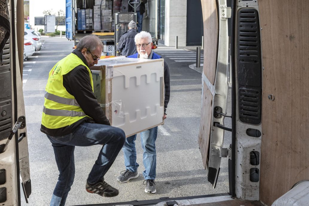 Au départ, les équipes ont distribué des denrées alimentaires et des produits d’hygiène (eau, lait, lait infantile, couches, etc.), des produits de nettoyage et d’entretien, ainsi que de l’outillage (pelles, balais, nettoyeurs haute pression et déshumidificateurs). Très rapidement, il a fallu remplacer les appareils électroménagers rendus inutilisables. « Les bénévoles m’ont amené un réfrigérateur, un lave-linge et un lave-vaisselle pour remplacer ceux qui avaient été détruits par la montée des eaux », se rappelle Éliane. Plus de 2 200 sèche-linge, gazinières, fours, chauffages d’appoint et autres appareils ont été distribués ; ainsi qu’une centaine de sommiers et de matelas.