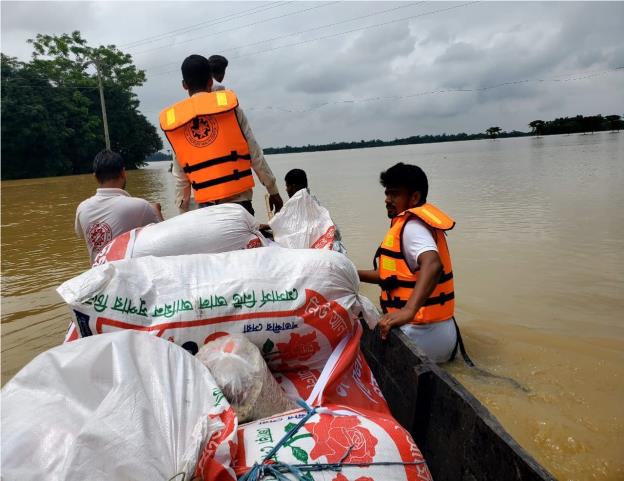 Les équipes de secours de GK Savar ont fourni « des aliments pour le bétail, dans les zones affectées par les inondations, car les animaux étaient sur le point de mourir de faim. Au total, 300 sacs d’aliments pour bétail (50 kg par sac) ont été distribués à 1 400 agriculteurs pour 3 160 bovins dans les villages du canton de Santiganj », confirme Halimur Reza, directeur de la santé rurale à GK Savar, dans un rapport adressé au Secours populaire.