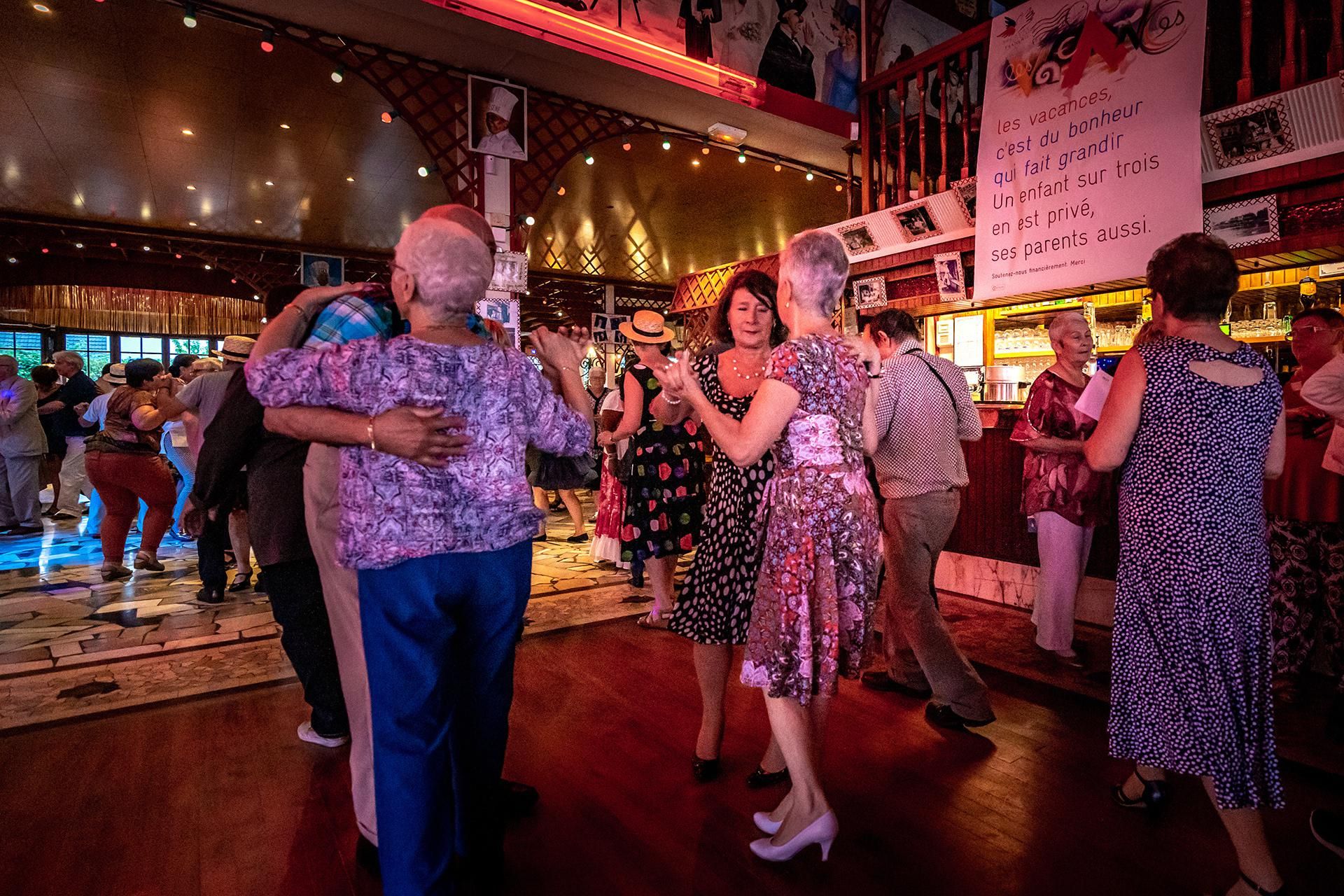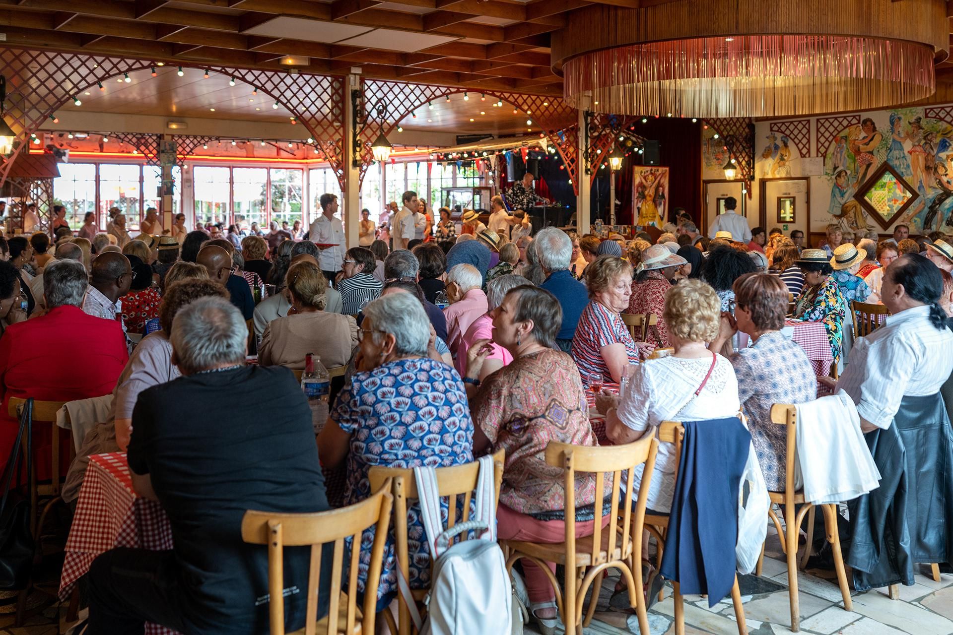 Vendredi 9 août, le Banquet des cheveux blancs a rassemblé 400 retraités des 8 fédérations d'Île-de-France du Secours populaire français. Après une croisière sur la Seine et la Marne, ils ont déjeuné et guinché Chez Gégène, la celèbre guinguette de Joinville-le-Pont. Seule journée de vacances pour beaucoup, elle est l'occasion rare de briser l’isolement.