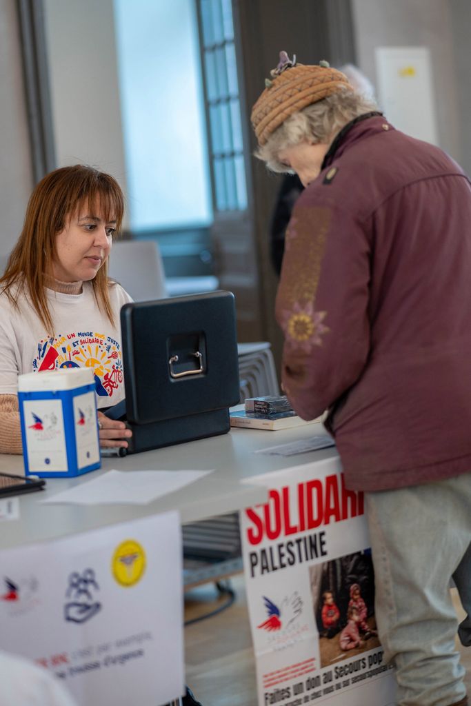 Sur le terrain, les bénévoles agissent pour soutenir notre partenaire palestinien PMRS. A Strasbourg s’est tenue du 15 au 22 avril une « Semaine d’animations autour de la solidarité en Palestine ». Les fonds collectés lors de la braderie solidaire, la table ronde et l’exposition photographique, ainsi que la soirée quiz & karaoké – soit environ 7000 € – ont été entièrement affectés aux actions conduites par PMRS pour permettre l’accès aux soins de la population palestinienne. A Montreuil les bénévoles du comité étaient présents sur le marché de la ville dès le 17 mars et ont collecté 2800 euros. La semaine suivante, le 23 mars, c’est sur le marché de Trappes que les gilets bleus du Secours populaire se sont donné rendez-vous avec leurs troncs, leurs flyers et leurs affiches, ce qui a permis de collecter plus de 1650 euros. Une action organisée à Aubergenville par l’association les « Lionnes d’ici et d’Afrique » a rapporté près de 2500 euros supplémentaires. La totalité de la collecte a été reversée à PMRS. Un peu plus au sud, à Toulouse c’est le collectif « Unitum Artists » qui s’associe au Secours Populaire au travers d’une vente aux enchères spéciale « Art Wake Up » pour soutenir PMRS afin de continuer l’accès aux soins des populations civiles. Une autre partie des fonds collectés sera reversée à des artistes palestiniens. La vente aux enchères a lieu le 4 mai 2024 à la Bourse du travail de Toulouse à 14h.