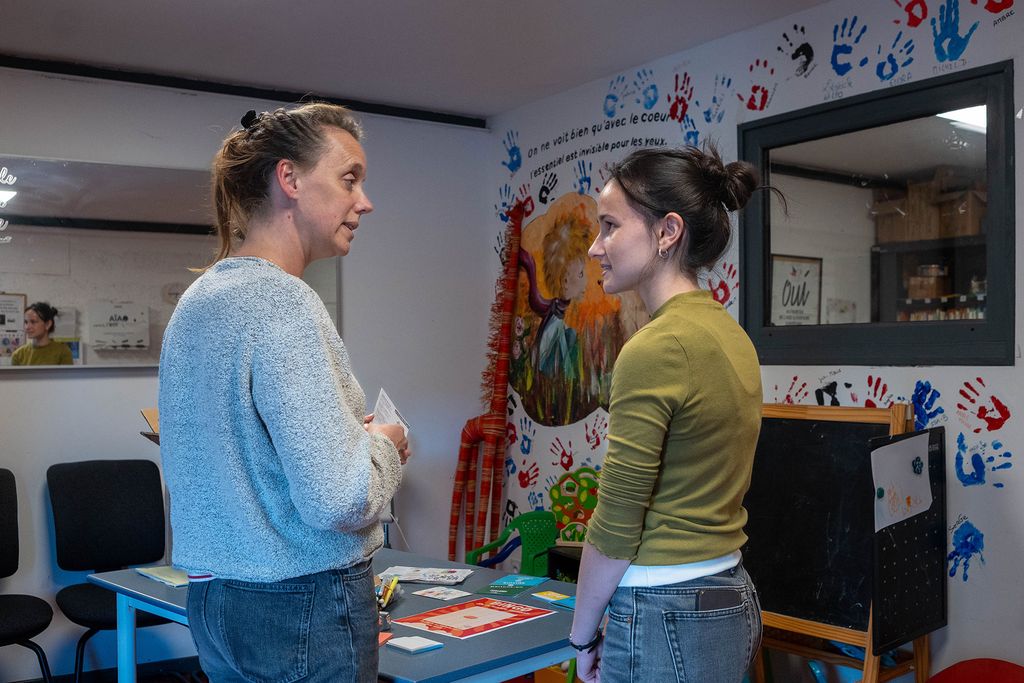 Anne vient régulièrement à la rencontre des jeunes accompagnés par le Secours populaire, afin d’évoquer avec eux différents aspects de leur santé – la nutrition, la sexualité ou la santé mentale, comme aujourd’hui. « Les étudiants que je rencontre font face à des difficultés matérielles mais aussi à un stress important, lié aux forts attendus quant à leurs études et au fait que certains ne peuvent pas se permettre de redoubler, analyse la professionnelle de santé. Cela leur demande beaucoup de travail et les isole. » L’infirmière détaille alors tout ce que ces jeunes étudiants ou apprentis « abandonnent » au fur et à mesure : les petits plaisirs comme une séance de cinéma ou un bon plat, les pratiques sportives – pourtant propices à évacuer les tensions et favoriser un bon sommeil – et les sorties entre amis. « Je trouve ce temps de distribution remarquable car c’est lors de celui-ci que les jeunes ont exprimé leur désir de pouvoir se retrouver dans des espaces sécurisés et sécurisants, sans jugement, conclut-elle. Les bénévoles du Secours populaire font montre d’une présence humaine et bienveillante qui permet cette rencontre. »
