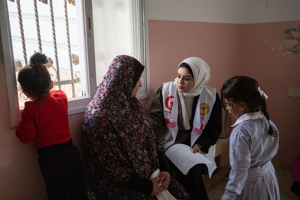 Au début, l’essentiel de l’activité se concentrait dans nos centres de santé primaire, à Jabalia et, quand c’était encore possible, à Gaza City. Mais en même temps, nous avons développé un travail de proximité avec nos différentes équipes mobiles. Celui-ci se poursuit aujourd’hui. Il y a d’abord nos équipes de secouristes, qui se déplacent en ambulances et évacuent les blessés. Ces dernières sont très actives dans le nord de la bande de Gaza. Il y a ensuite nos petites équipes de terrain, constituées d’un médecin et une infirmière, qui vont à la rencontre des personnes dans les refuges et les camps et leur fournissent des soins de santé primaire, ainsi que les médicaments essentiels. Certaines de ces équipes de proximité sont spécialisées dans la santé des femmes. Elles visitent dans les camps les femmes enceintes, ou celles qui viennent de donner naissance à un enfant. Quand les personnes y vivaient encore, ces équipes allaient les voir dans leurs maisons. Enfin, de petites équipes sont chargées de faire le suivi des personnes blessées. Car les blessés ne restent pas à l’hôpital. Dès qu’ils sont soignés, ils en sortent pour libérer de la place pour d’autres blessés, qui arrivent sans cesse… Enfin, nous avons mis en place des équipes spéciales chargées de répondre au appels téléphoniques et aux SMS des patients en cas d’urgence. Les pharmacies sont fermées, les centres de santé sont fermés, parfois ils n’ont plus que nous. Alors nous allons les voir, nous leur apportons leurs médicaments, parfois du matériel comme des fauteuils roulants, des déambulateurs, des matelas… Nous pouvons aussi fournir des kits de produits d’hygiène ou du lait pour les bébés. Nous sommes à leurs côtés…