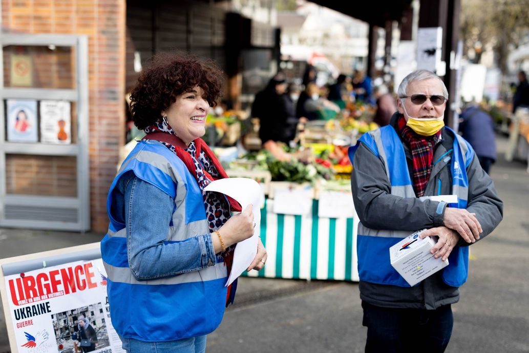 De leur côté les enfants « Copain du Monde » se sont également retrouvés pour répondre à l’appel du SPF. Nora, collégienne de 12 ans, était présente en centre-ville de Marseille le samedi 5 mars avec une vingtaine de « Copain du Monde ». Comme elle, Hamza, Yasmine et Rayanne veulent que la guerre s’arrête. « Je ne supporte pas de voir ces images où des enfants sont tués. Comment peut-on faire la guerre et tuer des gens ? On ne peut pas laisser faire. Il faut collecter de l’argent et leur envoyer des message de soutien », dit-elle émue et la voix tremblante. Alors que des enfants bénévoles du SPF collectent, d’autres comme ceux de Bretagne ont décidé de réaliser des dessins et d’écrire des messages aux enfants ukrainiens.Comme à chaque fois que le SPF doit faire face à une situation d’urgence, les partenaires qui agissent à ses côtés répondent immédiatement aux appels qu’il lance. C’est pourquoi, une fois de plus, de nombreuses entreprises et sociétés ont souhaité apporter leur soutien au SPF, aussi bien localement que nationalement. Celui-ci a pris différentes formes : dons financiers directs, organisation de collectes au sein de leurs entreprises avec leurs salariés (Gîtes de France, Altarea, la MSA…), en relayant notre appel à la solidarité ( l’APHP, la MAE, Vivons en Forme…) ou en mettant en place des opérations de produits-partage.Les 12 et 13 mars derniers, l’ensemble de l’association s’est mobilisée pour organiser une grande collecte nationale pour l’Ukraine. Sur les marchés, centres commerciaux, entreprises, théâtres, stades… les gilets bleus du SPF sont allés à la rencontre du public, l’invitant à soutenir les millions de réfugiés qui fuient leur pays en guerre.
