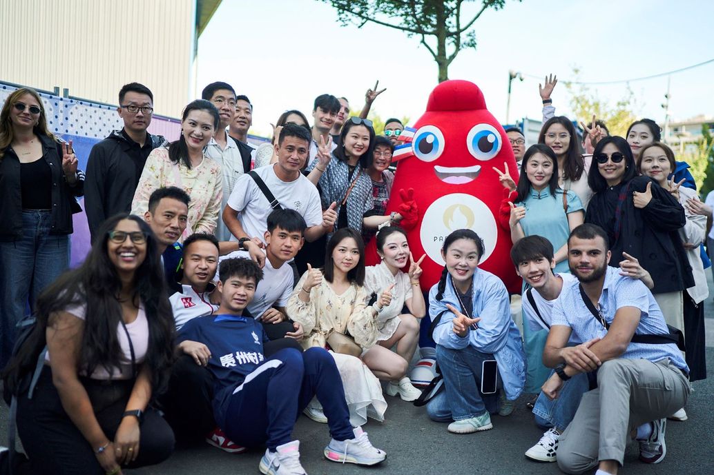 Incarnées par des comédiens-danseurs qui ont répété les gestes et les pas à exécuter sous leur costume de 6,5 kg, Ollie et Para, les deux mascottes des JO en forme de bonnet phrygien, accueillent la foule qui déambule tranquillement vers le stade sous le soleil nordiste. Dès qu’elles aperçoivent l’une de ces mascottes, les jeunes danseuses chinoises se précipitent dans sa direction, l’entourent et l’enlacent. Téléphone portable à la main ou en bandoulière, elles se livrent au jeu des selfies avec ce symbole des Jeux de Paris. Soigneusement maquillées pour assister au match, certaines portent leur tenue traditionnelle de danseuse conçue sur-mesure qu’elles conserveront tout au long de leur carrière.