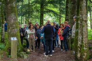 Le lendemain après un bon petit-déjeuner, les marcheurs néo-vosgiens sont prêts. Natif d’Épinal passionné par la nature, Bertrand, le responsable du Herbau, guide la troupe qui se lance vers 10 h 15 dans cet itinéraire facile (0,6 km aller-retour) situé dans le parc naturel régional des Ballons des Vosges. Longeant le ruisseau du Phény, ce sentier permet de découvrir les différentes espèces d’arbres de la forêt des Vosges placée sous la protection de l’Office national des forêts (ONF).