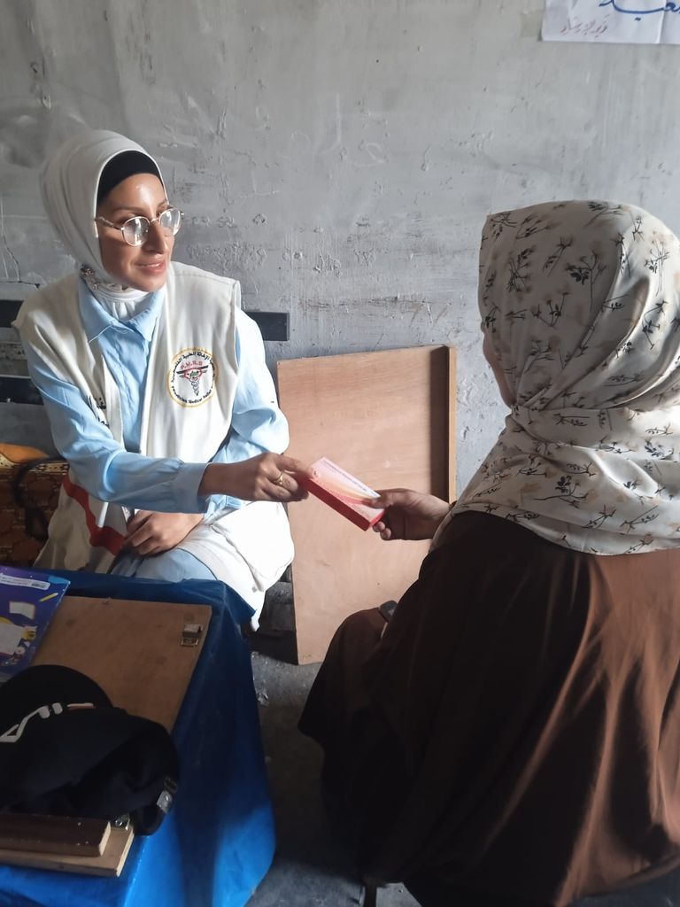 C’est le 15 mai 2025 que les bombes se sont déversées sur la maison. « Je ne sais pas comment j’ai survécu, qui m’a évacuée. J’ai compris que j’étais en vie et puis j’ai vu ceux qui étaient morts ». Sa grand-tante, sa cousine, son mari et l’enfant dans son ventre – « elle devait accoucher quelques jours plus tard, je l’avais encore examinée la nuit de sa mort ». Le reste de la famille, sa tante, son oncle et ses cousins, sont blessés. Weam se demande où elle a trouvé la force cette nuit-là. De poser un garrot à la voisine, à la jambe arrachée. De réanimer son enfant, yeux et bouche ouverts, en état de choc. Où, la force de le bercer, lui parler, le faire boire, nettoyer son visage ? Où, la force d’appeler les secours ? « Plus tard, je me suis blottie dans les bras de mon père et j’ai pleuré. » La nuit du 15 mai a brisé définitivement quelque chose en elle – « depuis, je suis dévastée » –, mais Weam continue d’avancer. Elle entre dans le camp de Sheikh-Radwan, se rend dans la salle dédiée aux consultations et accueille une première patiente. Elle se penche, prend sa main. « Je suis au plus près du cœur des mamans. » Puis pose son stéthoscope sur la poitrine de son bébé – les battements réguliers qui filtrent de l’appareil la rassurent. Son petit corps est emmailloté dans un lange, que la maman a confectionné avec un morceau de tissu prélevé sur sa propre robe. Si elle le peut, si le blocus se desserre, Weam lui apportera le sac que PMRS prévoit dans ce cas-là : des vêtements pour son enfant, du lait, des couches, des produits d’hygiène. Elle lui prend la main à nouveau. « Ma mission, c’est de soigner, de soulager, mais aussi d’apporter de l’espoir. »