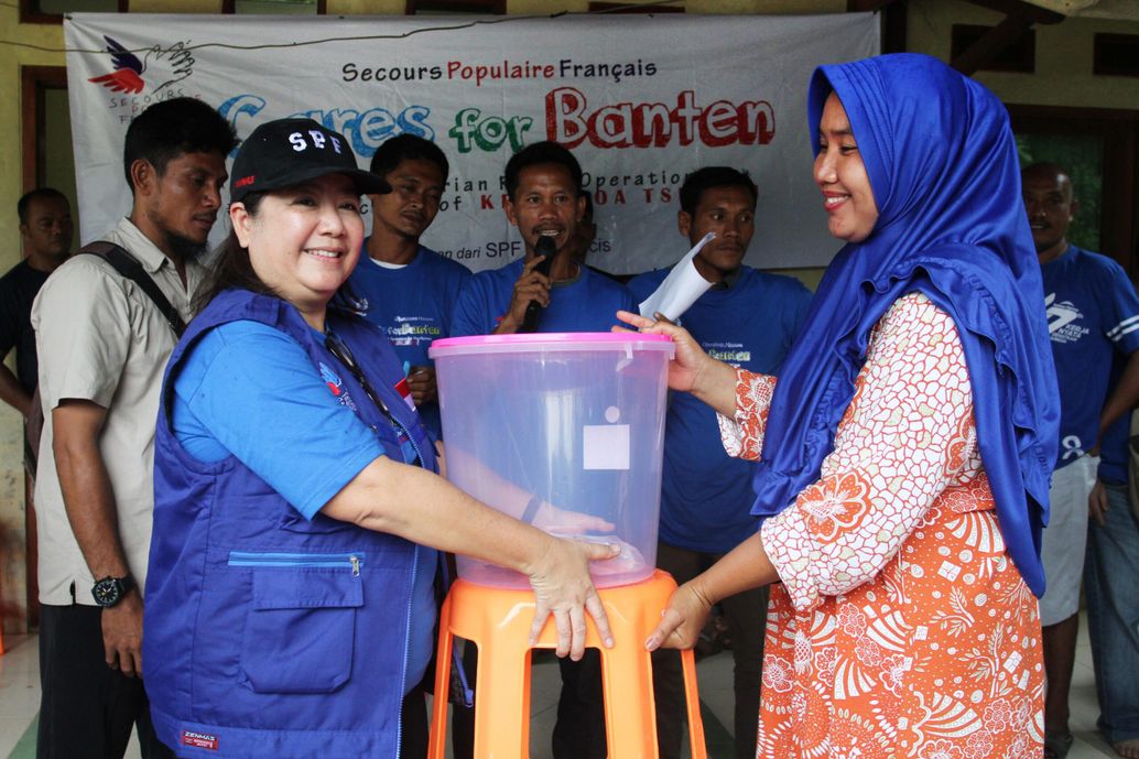 « Nous sommes implantés en Indonésie depuis 2004 et grâce à notre réseau du sud-est asiatique, nous pouvons très rapidement agir sur place. L’argent débloqué nous a permis d’aider 15 000 personnes. Alors que les populations reçoivent toujours un soutien matériel, nous avons commencé à travailler des projets de réhabilitation et de construction d’écoles. » explique Ismael Hassouneh, secrétaire national et membre de la mission. Entre août et décembre 2018, l’Indonésie a connu une succession de catastrophes : deux séismes très dévastateurs. Le premier dans la région de Lambok et le second à Palu. Enfin un tsunami volcanique a frappé les rives du détroit de la Sonde le 23 décembre. Ces évènements ont eu des conséquences terribles pour la population. Des centaines de personnes ont perdu la vie, des villes et des villages entiers ont été détruits. Les dégâts matériels sont considérables : écoles, routes, hôpitaux et habitations ont été complétement rayés de la carte. Selon les autorités, on compte aujourd’hui encore 600 000 personnes impactées par ces séismes et ce tsunami. Grâce aux fonds d’urgence débloqués par le Secours populaire 15 000 personnes ont pu être équipées de filtres à eau, recevoir une aide alimentaire et du matériel de mise à l’abri. S’appuyant sur l’expertise de son partenaire philippin Mirasol Outreach Fondation l’association est parvenue à distribuer des kits de filtrage pour des centaines de personnes qui pourront les utiliser durant deux ans. Des démonstrations effectuées par une cinquantaine de bénévoles vont permettre à terme à des dizaines de milliers de personnes de retrouver un accès à une eau potable.