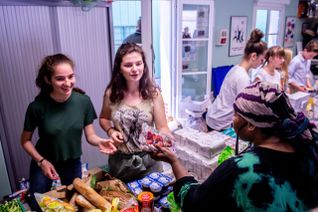 « Vous préférez la mâche ou la roquette ? Nous avons aussi des fraises et du pain aux noix ! » demande Capucine, jeune lycéenne de 16 ans aux familles qui viennent s’approvisionner au SPF. Chargée des produits frais, elle présente toutes les variétés de pain disponibles ce jour-là. Une maman venue avec ses trois enfants hésite à prendre des produits qu‘elle ne connaît pas, mais conseillée par Capucine elle repart avec le pain au pavot.