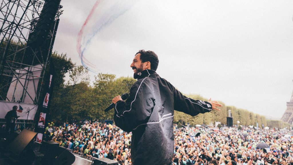 « Si je peux partager un peu d’amour, alors je le fais, particulièrement pour les enfants du Secours populaire qui ne partent pas en vacances », confiera Vitaa. C’est au tour de Ridsa de monter sur scène. Il déboule puis s’arrête net. « C’est dingue. Vous êtes magnifiques. Vous, la tour Eiffel, je m’en souviendrai toujours. » A perte de vue, le rappeur contemple les bras qui se lèvent et les corps qui ondoient, qui composent un vaste fleuve multicolore prenant source au pied de l’École militaire, pour plonger sous la scène puis aller se perdre sous les arcs de la tour Eiffel. C’est un océan de vagues, un bras de mer qui fait signe, un éclat de vacances qui s’invite à Paris. « Je fais de la musique pour voyager et c’est bien le thème aujourd’hui », songe-t-il. Son hit « Je m’en fous » met le feu. Tout le monde se baisse « en mode festival » puis se relève, frappe dans ses mains, fais les chœurs. C’est une silhouette fine, presque frêle, qui lui succède. Marguerite, tout juste révélée par la Star Academy, interprète sa pop douce et intimiste, engagée aussi. Elle y confie ses tourments intimes qui résonnent comme des messages universels, des mains tendues au public. Quand la foule entière reprend le refrain de « Les filles, les meufs », la jeune artiste n’en revient pas. « J’ai été bouleversée de les entendre chanter en chœur – les voix d’enfants, c’est ce qu’il y a de plus beau, témoignera-t-elle. Je me sens chanceuse, j’ai conscience d’avoir vécu un moment inoubliable. »