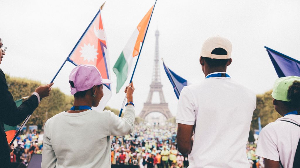 Inévitablement, l’hymne de la Reine des neiges fait un carton. Deux fillettes, Anna et Elsa d’un instant, dansent tandis que deux autres, émerveillées, en oublient de finir leur sandwich. Autre air repris avec délice : la chanson de Vaiana. « J’irai plus loin et toujours plus haut » reprennent les enfants, annonçant, sans le savoir, la suite du programme qui les attend. En l’occurrence, une séquence célébrant les Jeux de Paris 2024, augurée avec une interprétation extraordinaire de « I Will Survive » par Maysha, à la voix soul, puissante et chaleureuse, qui fait monter la pression d’un cran sur le Champ-de-Mars. Sur les écrans géants apparaît le visage de Tony Estanguet, président du Comité d’organisation des Jeux de Paris 2024, qui délivre aux enfants et aux bénévoles un message empli de respect et d’espoir. Dans la foulée, montent sur scène les nombreux champions olympiques et paralympiques * invités par le Secours populaire, tels Aurélie Aubert ou Jo-Wilfried Tsonga, que les enfants ovationnent et pourront retrouver plus tard, sur les stands d’initiation à leurs disciplines sportives. Vient alors le temps d’une autre séquence : celle dédiée à « Copain du Monde », le mouvement d’enfants bénévoles du Secours populaire. Un film d’animation le présente et la pétillante Nawelle K chante sa chanson spécialement composée pour « Copain du Monde ». Cultiver, dès le plus jeune âge, l’amour plutôt que la haine ; construire un monde plus juste et plus solidaire ; faire fi des frontières : voici ce qui anime le cœur de ces enfants qui sont venus partager leur engagement.