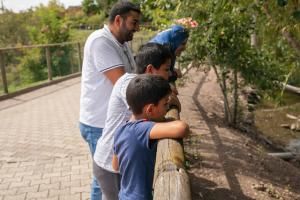 « Les loups blancs sont sortis, exulte Ibrahim, 10 ans, impatient de voir pour de vrai [son] animal préféré. J’aime bien les dessiner », précise le futur « dessinateur ou archéologue », qui passe la journée avec ses parents, sa petite sœur Ramah et son frère Radwan, « 5 ans et demi » et curieux de tout connaître. Arrivée en France en 2016, cette famille syrienne installée à Sainte-Florine partage pendant le pique-nique les bons moments de la matinée et s’amuse des exploits de leurs aînés intrépides, qui veulent voir ou revoir tous les animaux : le gorille, qui « a montré ses muscles comme un vrai humain », le lion et l’ours noir, qui s’est réveillé…