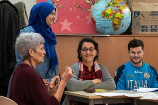 Tous les vendredis après-midi, Hélène, bénévole à Villejuif, anime un atelier conversation. Discussions informelles en français pour les uns et préparation à l’examen d’accès à la nationalité française pour les autres. Depuis trois ans ce rendez-vous rassemble 20 personnes d’horizons très divers.