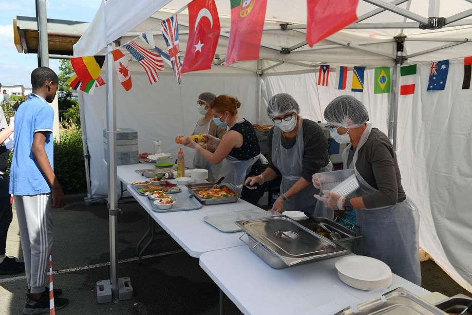 Jason prend son rôle très à cœur. Cahier à la main, masque sur le visage, le jeune homme est le garant des bonnes manières, des gestes barrières. Le maître d’hôtel. Calme, posé, il fluidifie la file des clients particuliers de ce self-service qui l’est tout autant sur le parking de l’hôtel Formule 1 de Beaucouzé. La quatre-voies Paris-Nantes pour seul horizon. Pas franchement un lieu de villégiature, même en temps normal. Réquisitionné par la Préfecture, l’hôtel du groupe Accor héberge cent vingt sans-abri dont vingt-deux enfants par mesure sanitaire depuis la fin mars. De tous âges – le plus jeune a quatre mois – et de toutes nationalités. Jason, 19 ans, est l’un d’entre eux. Angevin, il vit à la rue à la suite d’une histoire de famille. « C’est l’Arche de Noé, on sent un vrai élan de solidarité », dit Olivier, un autre sans-domicile-fixe. A ses côtés, Agnès, 48 ans, fait une pause cigarette en attendant son tour pour déjeuner. Originaire de Saint-Nazaire, elle est sans-abri depuis décembre. Et elle avoue que ce confinement forcé l’a changée. En bien ! « Maintenant, j’ai des copines géorgiennes et gabonaises. Avant, j’étais peut-être un peu raciste ? Cette période nous fait grandir. On fait tous des efforts les uns pour les autres. Il y a une vraie solidarité dans cette galère », explique Agnès alors que Jason lui annonce que son repas est disponible. Des carottes râpées avec des médaillons de surimi en entrée, une cuisse de canard confite avec de la sauce madère et des pommes de terre grenailles et une tarte aux pommes maison concoctés dans les cuisines de la CCI par Franck Coulot et Jean-Marie Morand, chefs du restaurant de l’association solidaire Resto-Troc, à Belle-Beille et par Christophe Maussion, chef chez Restoria. Autour d’Ana, une sans-abri géorgienne qui fait un peu le lien entre toute la communauté, des bénévoles de l’association COAAM de Beaucouzé font le service.