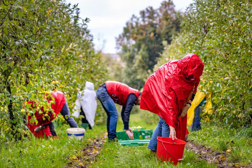 Mi-novembre, alors que la pluie est abondante, une dizaine de bénévoles et de personnes aidées se sont retrouvés à Oizé, petite ville située à 25 kilomètres du Mans. Pour beaucoup, cette opération de glanage n’est pas une première. Ce jour-là, l’équipe est conviée à glaner des pommes chez un arboriculteur partenaire du SPF. Leur mission : récupérer, après récolte, des fruits et des légumes au sol ou sur pied laissés par le producteur. Pour le Secours populaire, cette pratique ancestrale offre la possibilité d’enrichir ses distributions alimentaires en produits frais. Les maraîchers, qui ont effectué leur récolte, acceptent de laisser les bénévoles se servir gracieusement. Ce jour-là pendant plus de deux heures, l’équipe a eu tout loisir de récupérer, ou plutôt de glaner, ce que l’agriculteur n’a pas ramassé et de remplir des dizaines de caisses de pommes.
