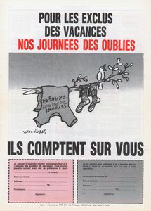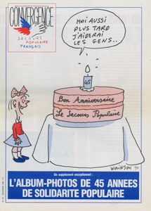 Avec toujours cette même volonté d’éducation populaire et le respect de la sensibilité et de l’intelligence des personnes, le Secours populaire a toujours souhaité donner à sa communication culturelle et institutionnelle les meilleures formes. C’est pourquoi cette communication s’est nourrie de travaux commandés à des graphistes dont Grapus, Nous travaillons ensemble et l’Atelier de création graphique de Pierre Bernard. De cette collaboration, s’est développée une identité forte et cohérente  au quotidien ; une image constructive, porteuse de dynamisme et d’espoir.
