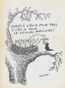 Au fil des ans, des illustrateurs, des dessinateurs ont apporté des contributions au journal de l’association ainsi qu’à divers supports de communication. Parmi eux, Lorjou, Escaro, Jean Effel… Wolinski, Cardon, Plantu… et plus récemment Tomi Ungerer, Serge Boutavant, Riad Satouf, Paul Cox… Quant à Jean Cocteau, il entretenait des relations privilégiées avec l’association à qui il offrit des dessins.