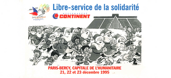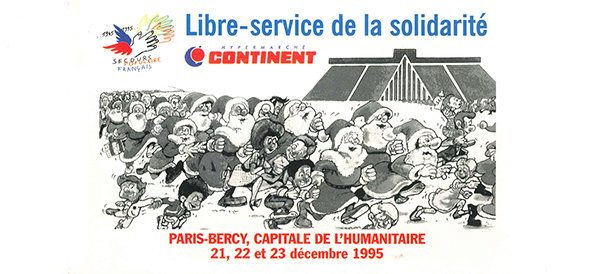 Ce nouveau concept dédié à l’aide alimentaire, fut largement médiatisé lors du XXV e congrès du SPF qui s’est tenu à Bercy, les 21,22 et 23 décembre où pour l’occasion était organisé un libre service géant. Celui-ci accueillait sur deux jours 16 000 personnes, invitées à faire leurs choix parmi de nombreux produits festifs de Noël. Cette date marque le point de départ de la naissance des libres- services sur l’ensemble du territoire. Le principe est simple : mettre en rayons tous les produits pour qu’ils soient disponibles sont à disposition par catégories. Les bénévoles ne distribuent plus, mais invitent les personnes aidées à choisir parmi différents produits.Dix ans après, lors du comité national du 18 mars 2005, Jacqueline Mérigot alors secrétaire nationale chargée de la solidarité en France, présentait un premier bilan de ce dispositif, « Aujourd’hui les libres services sont nombreux. Le Secours populaire a su s’emparer de ce concept destiné à rompre avec l’idée d’assistanat. Il permet notamment de rencontrer les gens deux fois, lors de la remise du chéquier et après. Le choix de choisir est réaffirmé comme condition du maintien de la dignité, de même que la participation financière.» Cette révolution, comme le disaient les bénévoles, dans les pratiques de solidarité existe aujourd’hui quasiment dans toutes les fédérations et comités. Bien que nécessitant plus de moyens, des locaux mieux adaptés, plus de bénévoles et des produits plus diversifiés, cela n’a pas empêché l’association de développer cette action, bien au contraire et de contribuer ainsi à renforcer l’accès à une alimentation diversifiée et à des produits d’hygiène ou destiné à la petite enfance.