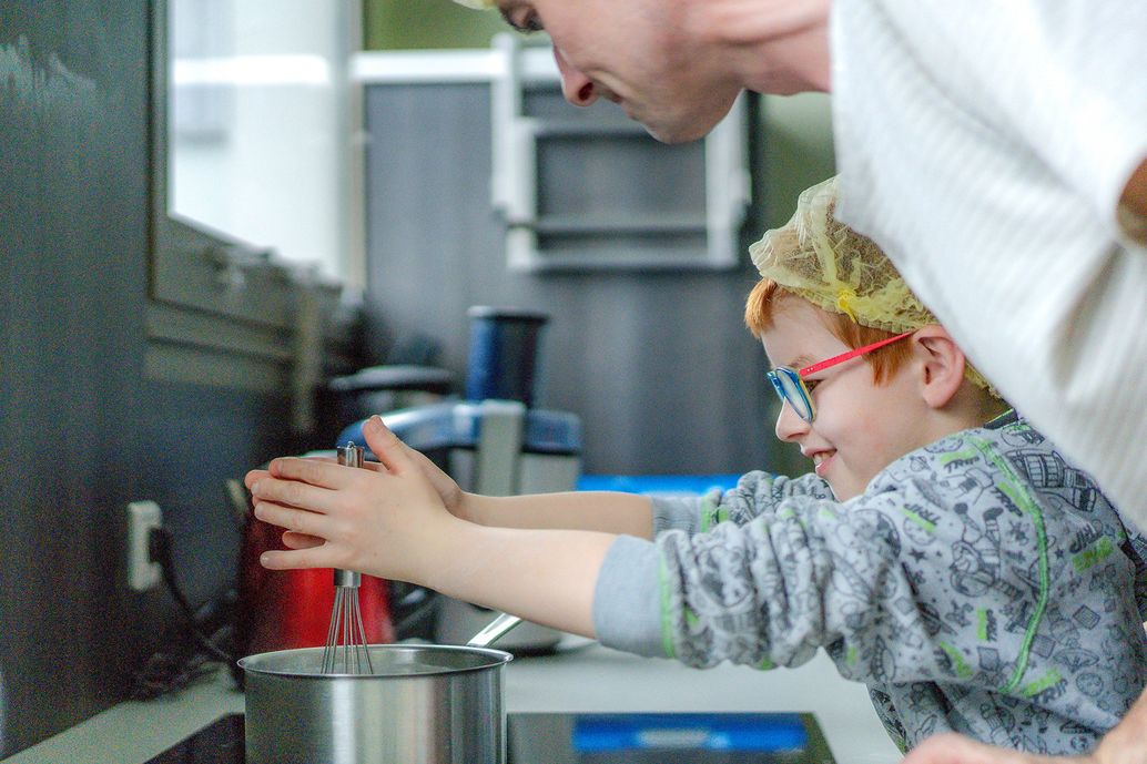 Des salariés du groupe Elvir, connu pour sa marque Elle & Vire (crème, beurre, fromages frais, etc.), ont consacré leur après-midi à faire découvrir une recette alliant plaisir et santé. Oriane fait la connaissance d’Inès, Ludivine accompagne Gloria, Mickaël aide Vitoria et Dany s’occupe de Nathan. Toute l’équipe s’est donnée à fond pendant trois heures dans la cuisine qui est aussi le laboratoire de l’usine de Condé-sur-Vire.