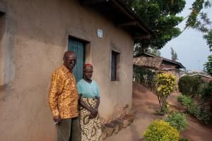 Devant sa maison, intégralement financée par le Secours populaire, Séraphine et José Kagabo échangent avec avec pudeur et émotion, ce 8 février.