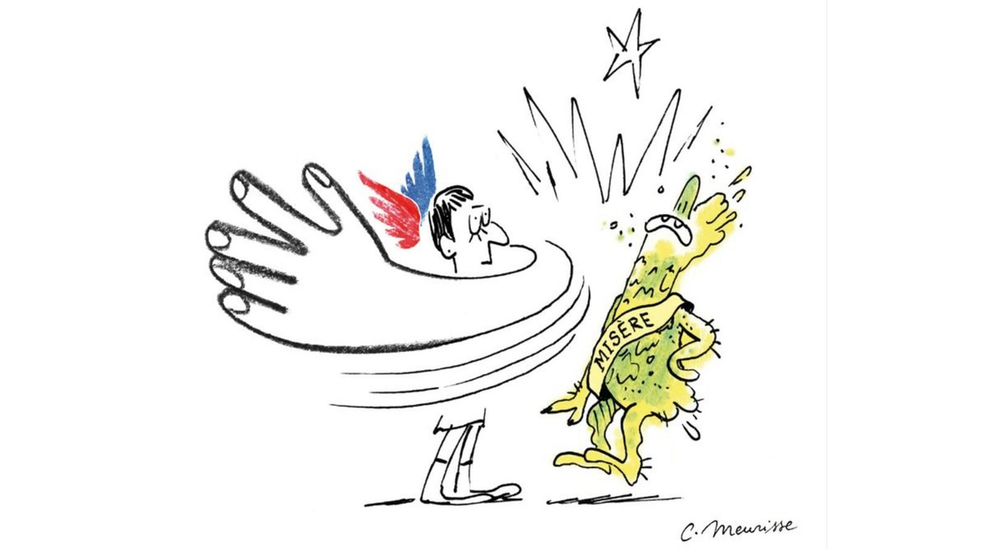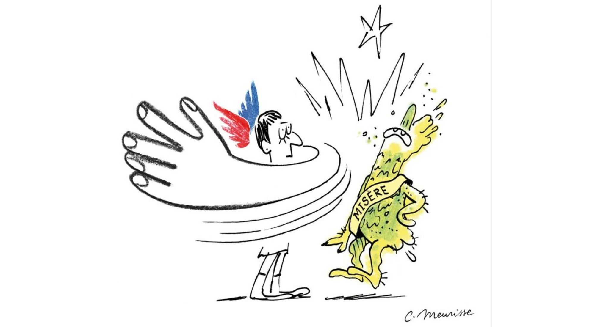 « Dans un monde où les inégalités se creusent et où la pauvreté frappe toujours plus fort, s’engager devient un acte nécessaire », prolonge la réalisatrice et comédienne. Pavé dans la mare, cahier de doléances, boîte à surprise, carte de vœux, coffre à trésors : ce livre est tout cela à la fois, mais il est avant tout un acte fort d’engagement. « Faire appel aux caricaturistes pour donner un coup de main aux associations humanitaires et solidaires est une tradition qui se doit d’être perpétuée », témoigne Catherine Meurisse, auteure du dessin de couverture. Sur celui-ci, l’illustratrice éclaire : « Je suis partie du célèbre (et beau) logo de l’association créé par Grapus il y a plus de quarante ans, la main ailée. Dans ce symbole, la main est tendue vers autrui. Mais lorsque l’on voit les chiffres de la pauvreté en perpétuelle hausse, on a envie que cette main tendue soit un peu plus… ferme ! », s’amuse l’artiste.