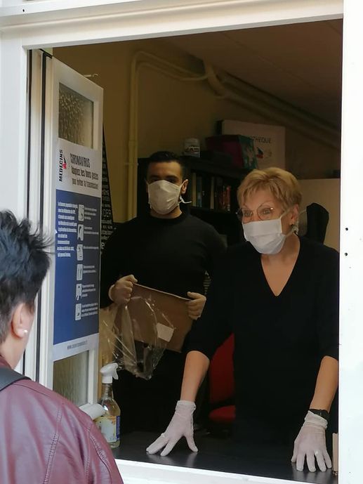 Pour protéger les bénévoles et les personnes accueillies, masques et gants sont obligatoires. La distance d’un mètre entre chacun est aussi respectée. A l’intérieur des locaux, les bénévoles préparent les colis et les passent par la fenêtre, aux familles qui restent dehors.