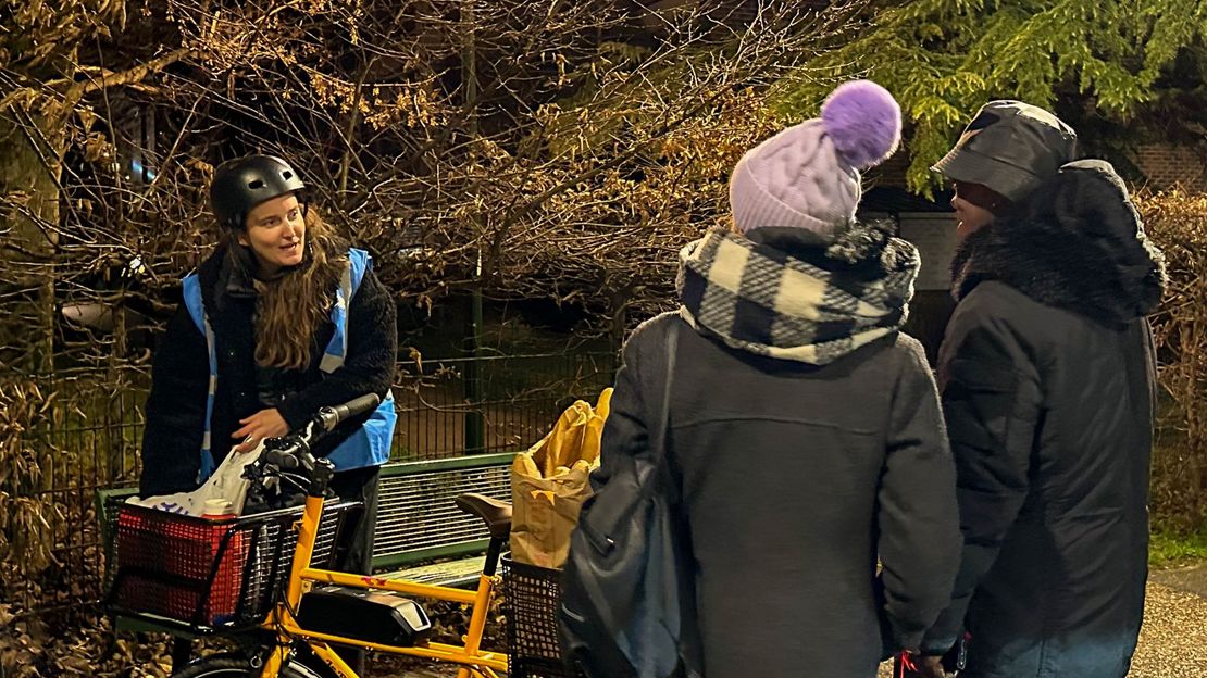 Jeunes bénévoles, Léa et Pauline combinent leur travail la journée au bénévolat la nuit. Elles ont créé une maraude dans une banlieue populaire aux portes de Paris, à vélo, un moyen de transport qui leur permet d’être plus attentive à leur environnement. Une fois un lien établi avec les personnes à la rue, les deux jeunes femmes les encouragent à se rendre à l’accueil de jour pour être accompagnées sur le plan de la santé et vers un hébergement.