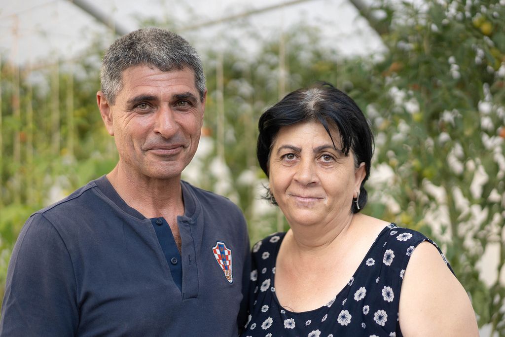 Kamo et Nona dans leur serre. Après une aide matérielle, ils sont accompagnés par Winnet dans le cadre d’un programme de soutien à l’activité agricole. ©JM Rayapen/SPF