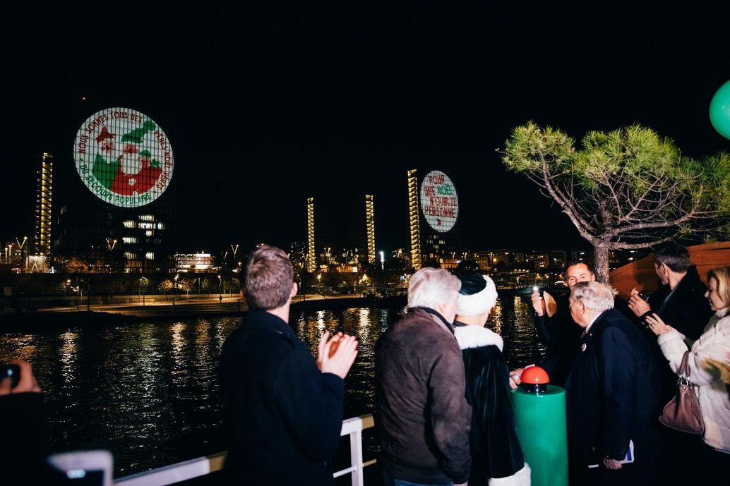 De l’autre côté de la Seine, sur la marina qui fait face à la BNF, l’acteur Christian Rauth s’enthousiasme : « Le message [de mise en mouvement] passe bien, il faut le diffuser le plus largement possible : nous sommes tous des Pères Noël verts », déclare l’un des parrains du Secours populaire, aux côtés de l’actrice Ariane Ascaride, le champion du monde de foot freestyle Gautier Fayolle ou du journaliste Jean-Philippe Doux.