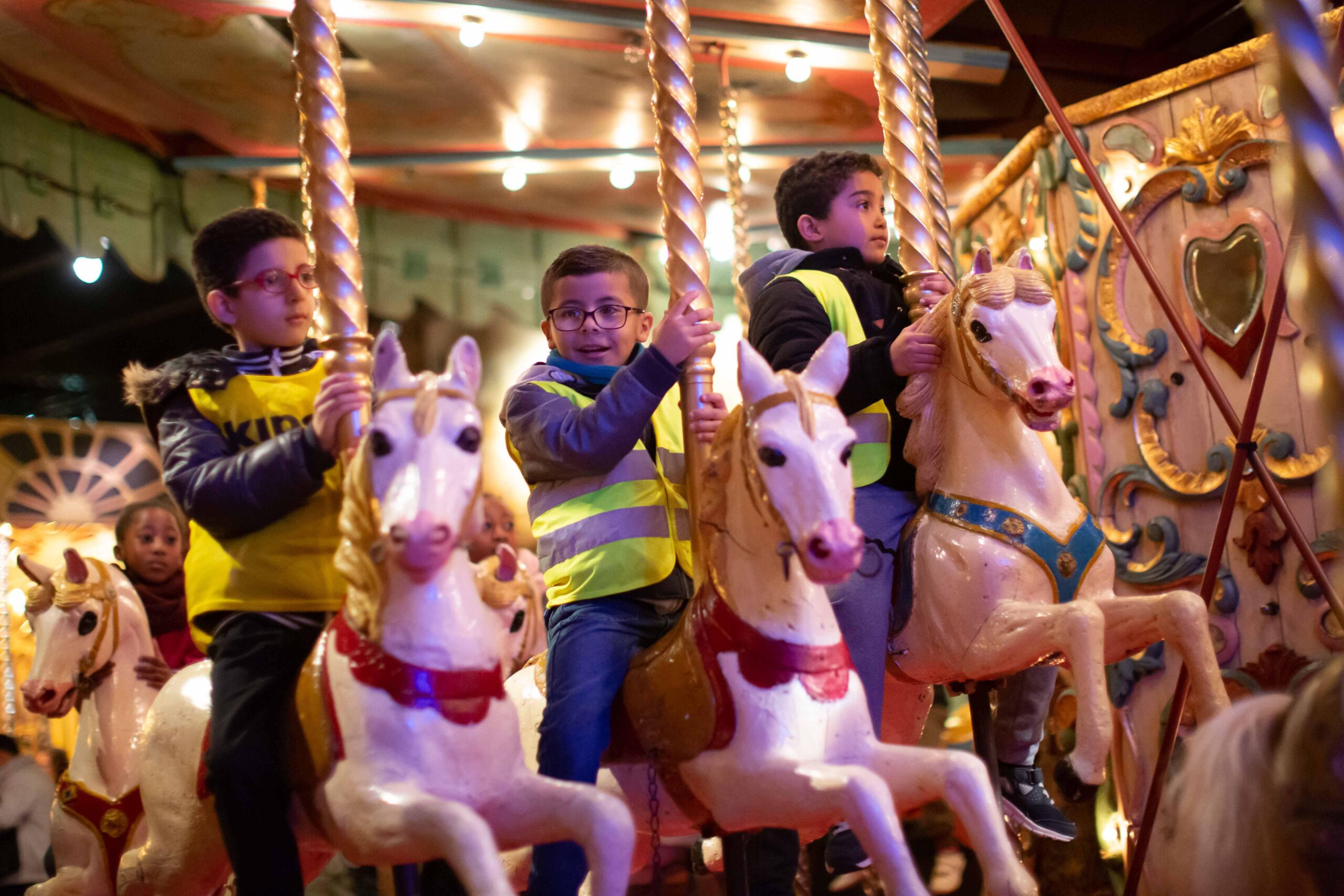 Pour le lancement de la campagne nationale des Pères Noël verts, environ 300 enfants de familles aidées par le Secours populaire français ont profité d’un après-midi de fête, mercredi 5 décembre, au Musée des Arts forains, à Paris.