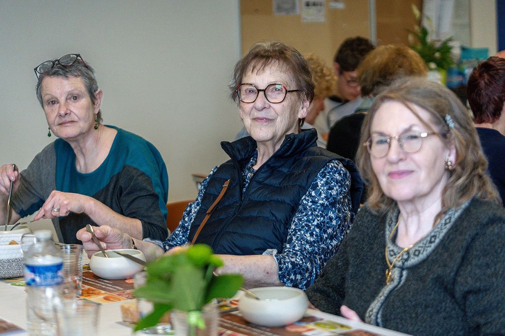 Bien plus qu’un repas de fête, ce premier rendez-vous des 80 ans fut aussi un temps où les bénévoles engagés depuis de longues années au côté du Secours populaire ont pu se retrouver et se rappeler les bons moments passés ensemble. Maurice, aujourd’hui âgé de 86 ans, est heureux d’être là et de retrouver les copains du Secours comme il le dit lui-même « Au Secours populaire, on forme une famille. Je suis venu plusieurs années. Je m’occupais de la logistique et allais chercher les dons avec le camion. Maintenant je suis un peu plus fatigué, donc j’ai laissé ma place à de plus jeunes bénévoles, Je viens quand même quelques fois pour déposer des dons et parler avec les amis. » Édith aussi ne vient plus depuis le Covid, mais garde le contact avec certains bénévoles avec qui elle fait quelques sorties. Françoise, ancienne assistante sociale et actuellement accueillante, apprécie d’être là aujourd’hui. « Des moments festifs tous ensemble nous n’en partageons pas tant que ça, notre mission de bénévole est très prenante. La solidarité demande du temps. Mais j’aime beaucoup ce que je fais », précise-t-elle.