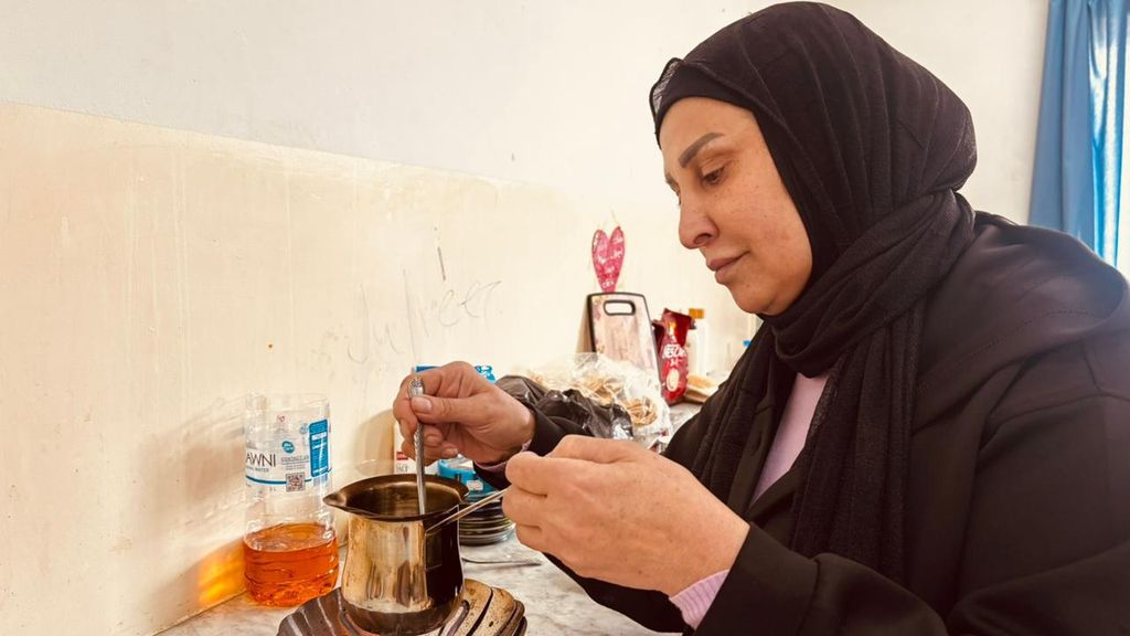 Après avoir remis la chambre en ordre, nous commençons à faire le café. Je le prépare pour tout le monde car ici, on dit que le mien est délicieux ! Il n’a rien à voir avec le café que je bois chez moi dans mon jardin, mais nous faisons de notre mieux pour nous adapter. Dans cet abri, le rituel du café dépasse la simple habitude : c’est notre pause, une bouffée d’oxygène, durant laquelle on lit les nouvelles et on se parle de nos vies. L’odeur du café me ramène immédiatement à Nabatiyeh, à ces matins où tout semblait plus léger.