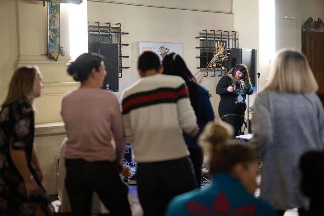 À 14 heures, trente détenus ont assisté au concert du duo Enomystik, qui s’est déroulé dans la chapelle de la prison, monument historique en ogives orné de 16 stalles en bois disposées en arrondi. À 16 heures, un deuxième set était réservé à la trentaine de femmes détenues, qui ont toutes reçu un colis festif avec une rose et une pochette de maquillage en cadeau. Après leur promenade, les quinze femmes qui participent à ce concert ont très vite mis l’ambiance. Dès les premières notes d’Another Brick In The Wall des Pink Floyd ou d’Un autre monde de Téléphone, plusieurs se sont levées pour danser et ont réclamé « une dernière » que Valérie, la surveillante restée debout en retrait, a acceptée sous les applaudissements. « C’est cool : cela change », jubile Maïmouna, 20 ans. « C’est important, ajoute Aline. On n’est pas oubliées. »
