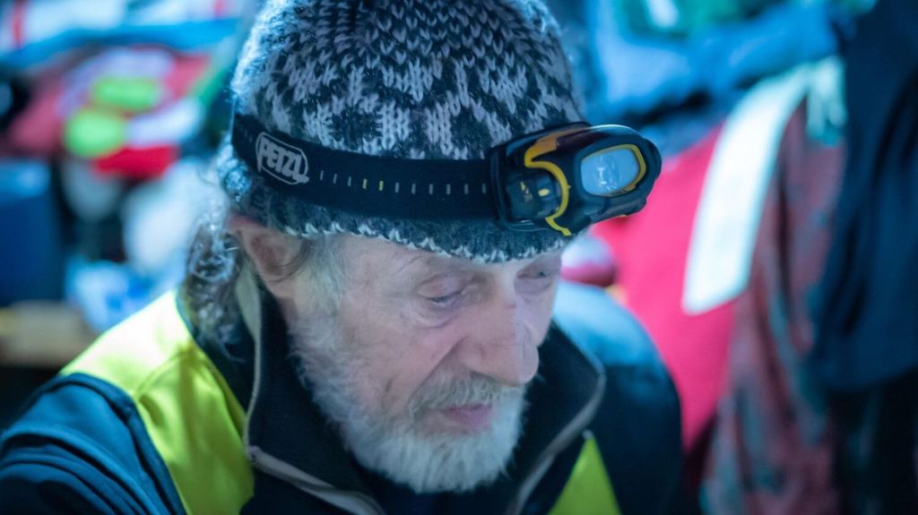 Son cocon est si exigu qu’il pouvait toucher les deux cloisons opposées en tendant les bras. Sur la gauche, son lit sur lequel repose un assemblage de couvertures et de duvets, prend toute la place, ou presque. Il reste moins d’un mètre carré pour placer le réchaud et ses pieds, juste à l’entrée. Ce soir-là, en passant la porte, l’homme de 63 ans avait enlevé la petite lampe frontale avec laquelle il se déplace dès la fin d’après-midi en hiver et avait mis une soupe à mijoter.