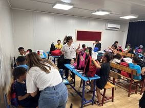 Dans la ville devenue un immense chantier, où les camions charrient en permanence des matériaux de construction, l’école de Funda est devenue un point de stabilité. Le Secours populaire a facilité la reprise des cours en distribuant des fournitures scolaires auprès de plus des 500 élèves de l’établissement scolaire. « Avec cette initiative des ‘‘Stylos de l’espoir’’, les élèves ont reçu un cartable et un ensemble complet de cahiers, crayons, stylos, gommes, règles et matériel de coloriage. Ça leur a permis de reprendre leurs apprentissages, mais a aussi constitué un encouragement dans les circonstances difficiles qu’ils traversent », souligne Rahshan Saglam, de Nartane.
