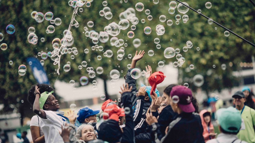 Du côté de “la montagne”, les stands sportifs coexistent avec des ateliers destinés à ouvrir sur le monde. Ainsi, l’un d’eux propose, en partenariat avec l’association Cap’Sport, aux enfants de réaliser un parcours en fauteuil roulant ou en ayant les yeux bandés et une canne blanche. Mafarima, 9 ans, portant une casquette verte, se lève du fauteuil : « C’est comme si je ne pouvais plus me servir de mes jambes, ça me donne envie d’aller plus vers les gens qui sont vraiment en fauteuil, car je comprends mieux leurs difficultés. » D’ateliers en ateliers, la petite vivant en Seine-Saint-Denis passe une excellente journée : « Je joue, j’écoute la musique et je me fais des amis, on est ensemble sans se bagarrer. »