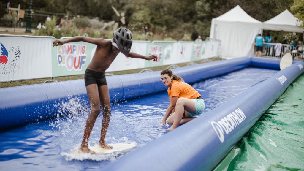 Démonstrations sportives, handisport, stands de Copain du Monde pour sensibiliser sur la protection de la ressource en eau, pour ses 80 ans, le Secours populaire a organisé une journée de vacances pour 40 000 enfants qui ne sont pas partis de chez eux cet été. Sur le Champ-de-Mars, ils ont découvert, ce 20 août, des tas de sports différents, des activités créatives et se sont fait des amis aux pieds de la tour Eiffel.