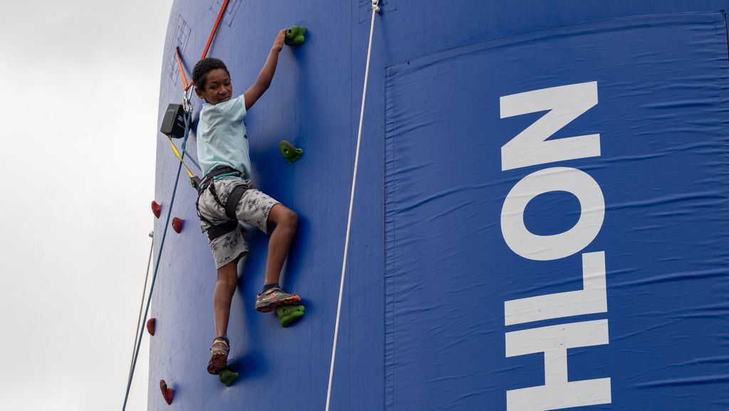 À proximité, toujours dans la partie “montagne”, de nombreux murs d’escalade ont été installés. Aux pieds de la tour Eiffel, Rania, 9 ans, cherche ses appuis le long d’une très haute structure gonflable qui doit bien faire l’équivalent d’un immeuble de trois étages. Arrivée en haut, elle se laisse descendre le long de la corde de rappel. En touchant le sol, elle se met tout à coup à trembler doucement. « J’avais un peu le vertige tout en haut, mais je voulais vaincre ma peur », raconte encore un peu sous le coup de l’émotion cette petite venue de Saint-Pierre-des-Corps.