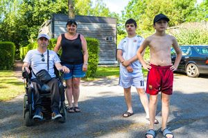 Quand on se promène dans les allées ombragées du camping, qui desservent des espaces intimes où les mobile homes se nichent dans des petits coins de nature, on a le sentiment de voyager. Des bribes de danois, de néerlandais, d’allemand et de français se mêlent… ainsi que de géorgien ! Celles-ci filtrent d’un joli mobile home en bois blanc, orné de volets vert olive, entouré d’un jardin. Il est occupé durant une semaine par une autre famille accompagnée par le Secours populaire, composée de Davit, sa femme Ketevan et leurs deux garçons : Saba, 14 ans et Tsotne, 12 ans. C’est un des bungalows adaptés du camping : une rampe d’accès permet à Davit, en fauteuil roulant, d’entrer dans ce logement spacieux, pensé pour son handicap.
